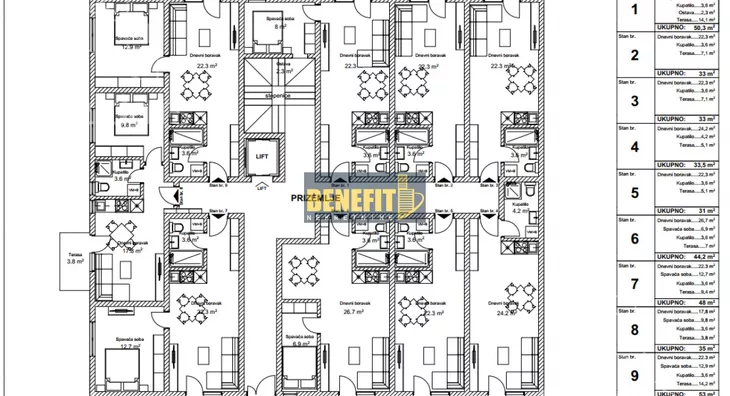 Zgrada ima neto kvadraturu od 2.584,9m2, i sastoji se od prizemlja i šest spratova. Ima ukupno 62 stana različitih struktura i površina u rasponu od 29m2 do 198,8m2. Za izgradnju su iskorišćeni veoma kvalitetni savremeni materijali. Izdaje se isključivo cela zgrada, a ne pojedinačni stanovi. Idealna je za smeštaj radnika, ali se može koristiti i u druge svrhe.