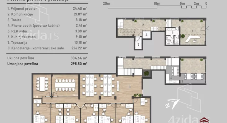 - Sedam odvojenih kancelarija (12m2 - 20m2)