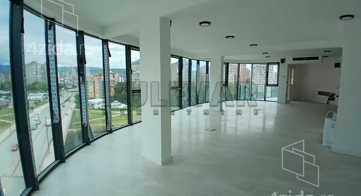 Izdaje se ekskluzivan poslovni prostor koji zauzima ceo osmi sprat, površine 300m2, sa direktnim pristupom iz lifta. Prostor je pažljivo organizovan i obuhvata ulazni hol, moderno kupatilo, dodatni toalet, kuhinju, dve terase, a sve je opremljeno grejanjem i sistemom klimatizacije fen kojlerima, koji omogućavaju prijatan ambijent tokom cele godine. Prostor je pokriven video nadzorom i poseduje ozvučenje, što ga čini idealnim za kancelarijski rad, kreativne industrije ili klijentski orijentisane delatnosti. Pored glavnog nivoa, prostor uključuje i dva dodatna sprata: Sedmi sprat, površine 80m2, povezan unutrašnjim stepeništem, ali sa mogućnošću i zasebnog ulaza, poseduje sopstveni toalet, terasu, klimatizaciju, podno grejanje i ozvučenje. Šesti sprat je identičan sedmom, što pruža dodatnu fleksibilnost u organizaciji prostora(open space, konferencijske sale i dr.) Ceo prostor je u portalima, sa pogledom na reku, lokacija je izuzetna, sa odličnom infrastrukturom i pristupom, a na raspolaganju je čak 11 parking mesta, što je prava retkost i dodatna vrednost za poslovni prostor ovog tipa. Cena ovog prostora je po dogovoru, okvirno od 10-15 e/m2, u zavisnosti od potrebe zakupca i uslova saradnje. Izdaje se ozbiljnim zakupcima na duži vremenski period. Obavezan je depozit u visini jedne mesečne kirije. Agencijska usluga je u visini 50% prve kirije, jednokratno. Za više informacija, kao i zakazivanje razgledanja ovog prostora, javite se na telefon agencije. Ovu, kao i druge nekretnine možete pogledati na našem sajtu. Čekamo Vas!