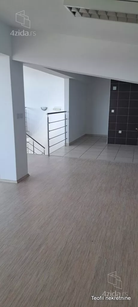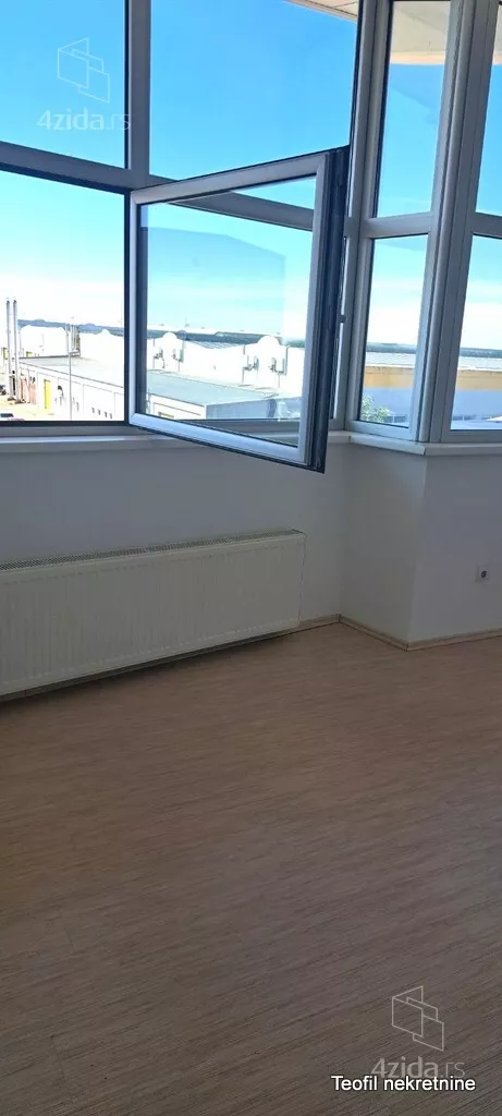 Poslovni kancelarijski prostor na ll spratu poslovne zgrade koja se nalazi u okviru Industrijske zone u Novoj Pazovi. Prostor je nekorišcen, trenutno prazan. Ima tri velike kancelarije, hodnik dva mokra čvora, ostava, dve terase. Prostor izgledom lep i savremen sa puno svetlosti. Ima etažno grejanje na gas. Dosta parking mesta na placu.