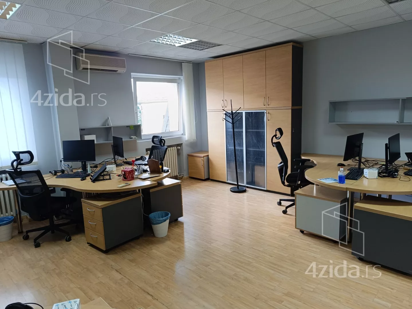 - Opremljenost: Polunamešteno - TV, klima, kuhinjski elementi, frižider, mikrotalasna rerna, šporet, plakar, ugradni plakar, kancelarijski nameštaj