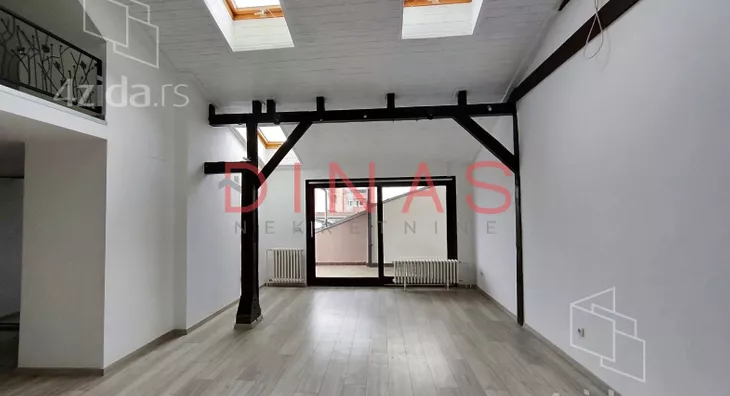 Izdaje se lepa kuća na odličnoj lokaciji, pogodna za različite delatnosti: ordinacija, kancelarija, mini hostel i dr. Kuća ima dva ulaza. Jedan ulaz vodi u deo kuće koji ima dva nivoa. U prizemlju se nalazi soba sa kuhinjom i kupatilom od 20m² a u potkrovlju su tri odvojene sobe, kupatilo i veliki open-space prostor od 37m² sa visokim plafonom i izlazom na terasu (12m²).