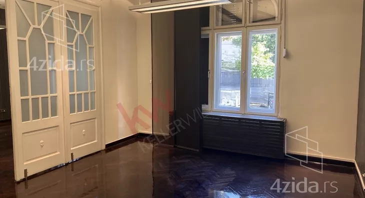 Ukupna površina prostora iznosi 143 m². Nalazi se u visokom prizemlju, sa dvostrukom orijentacijom – ka Bulevaru Despota Stefana i ka mirnom, zelenom dvorištu, i ima dva ulaza. Prostor je potpuno renoviran i adaptiran za potrebe poslovanja – a upravo i kompletno okrečen, sa hoblovanim i lakiranim parketom, izuzetno funkcionalan i pregledan. Ulaz vodi u veliku centralnu prostoriju, iz koje se pristupa ostatku prostora: četiri prostrane kancelarije pravilnog oblika, hodniku koji vodi ka kuhinji, dva mokra čvora, kao i delu predviđenom za RACK ormar. Prostor se greje putem centralnog grejanja, a dodatni komfor omogućavaju tri klima jedinice. U cenu zakupa su uključena dva privatna parking mesta u dvorištu zgrade. Dostupna je optika SBB i MTS u samoj zgradi.