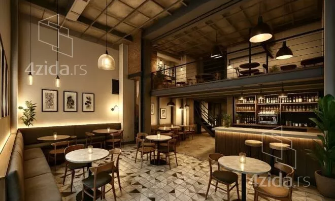 Prostor se prostire na tri nivoa: prizemlje (107 m2) sa visinom plafona gotovo 5 m, idealno za prostor za sedenje, šank i izlog prema ulici; galerija (47 m2) koja može služiti kao dodatni deo za goste; i podrum (45 m2) predviđen za kuhinju, toalete i tehničke prostorije. Postoji mogućnost formiranja bašte od oko 50 m² na trotoaru ispred lokala, što ovaj prostor čini posebno pogodnim za restoran, bistro, kafić ili kafeteriju.