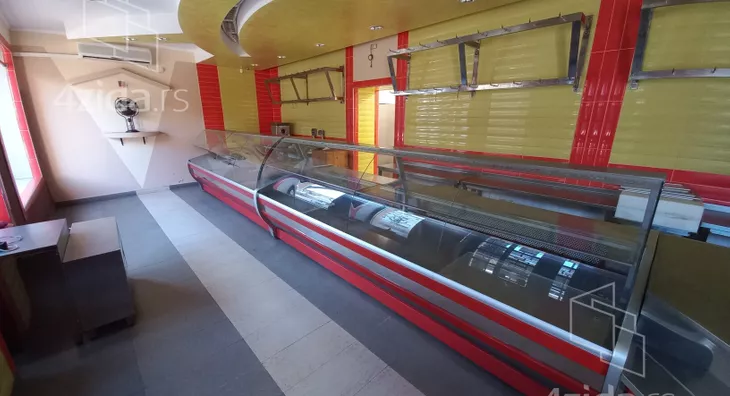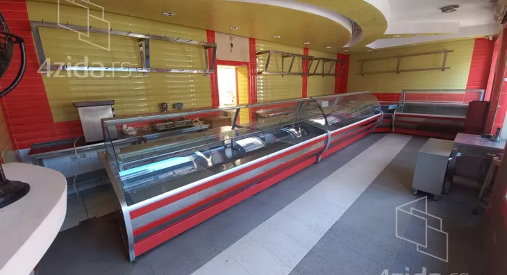 Poslovni prostor u funkciji MESARE, na Mlečnoj pijaci, sastoji se od maloprodaje sa vitrinama , occ,a 40 m2, dve rashladne komore, radionica, dve kancelarije i toalet, occ,a 60 m2.