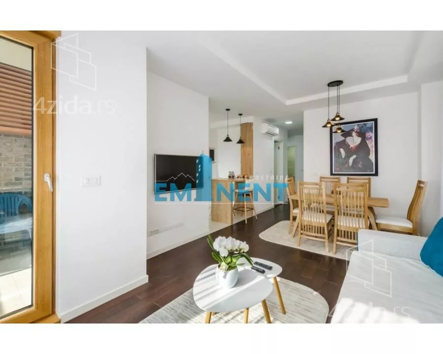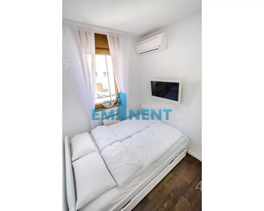 - Opremljenost: Namešteno - internet, klima