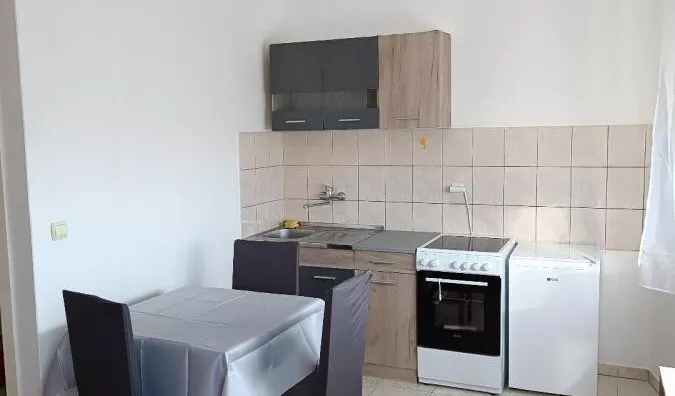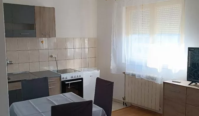 - Opremljenost: Namešteno - interfon, TV, klima, veš mašina, frižider, rerna, ležaj, plakar, kanalizacija