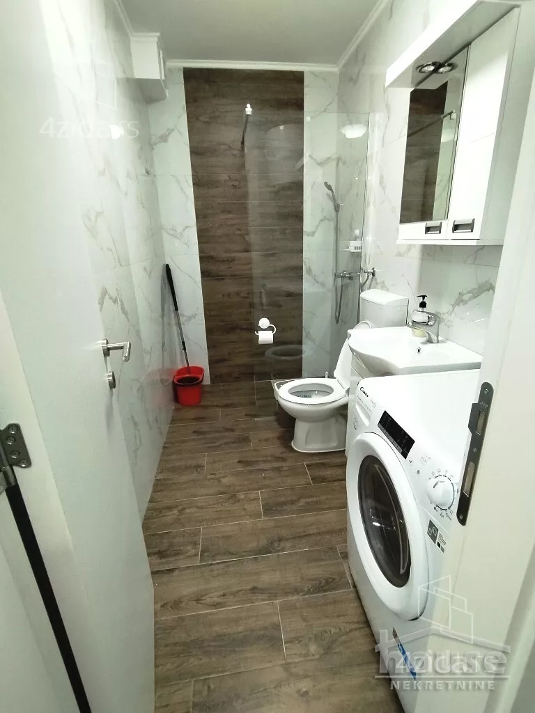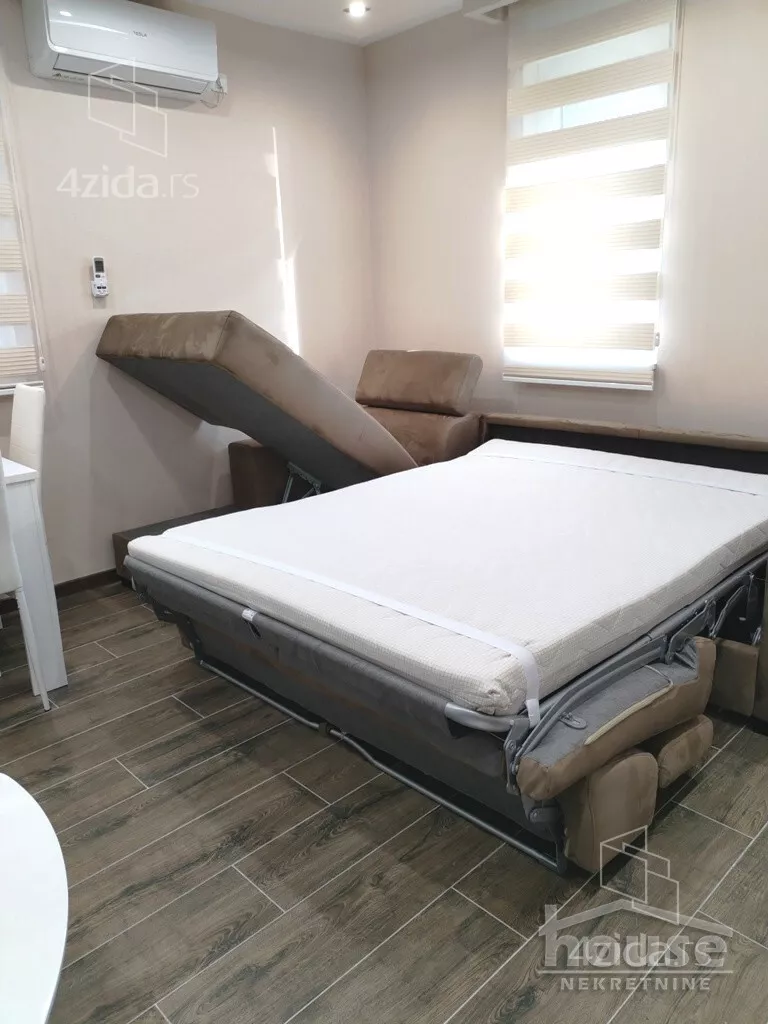 Kompletno je namešten novim i kvalitetnim nameštajem i opremljen novom belom tehnikom. U dnevnoj sobi je ugaona garnitura, a u spavaćoj ležaj koji se razvlači u bračni krevet i američki plakar. Nova ugradna kuhinja sa šporetom, kombinovani frižider i mašina za sudove, smart lcd tv, klima, u kupatilu mašina za pranje i sušenje veša.