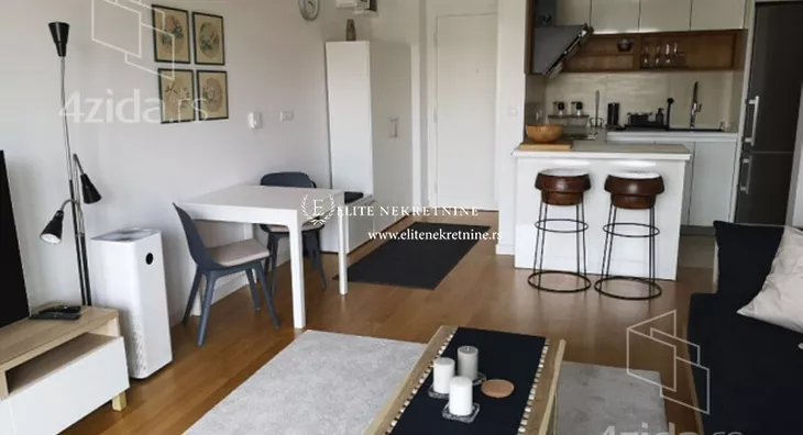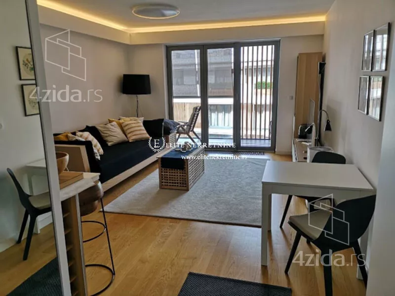 Dvosoban luksuzno namešten stan u okviru kompleksa West 65. Garažno mesto u sklopu zgrade uključeno u cenu zakupa.
