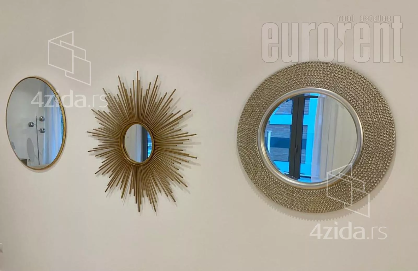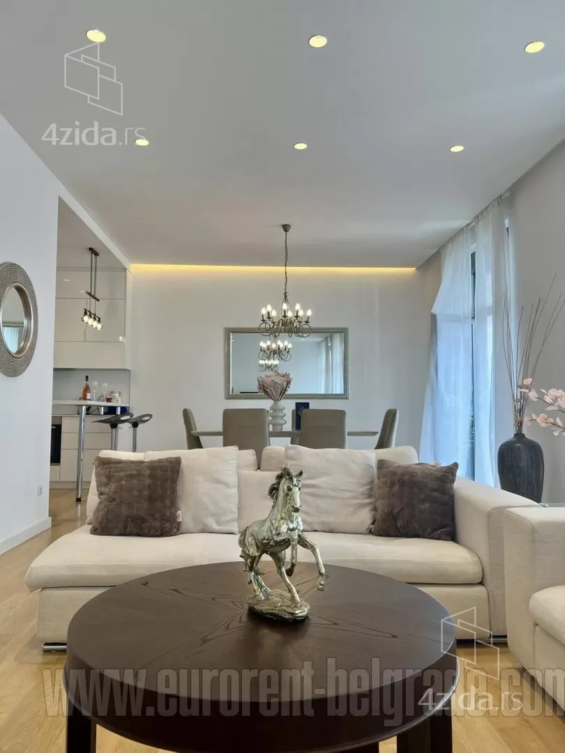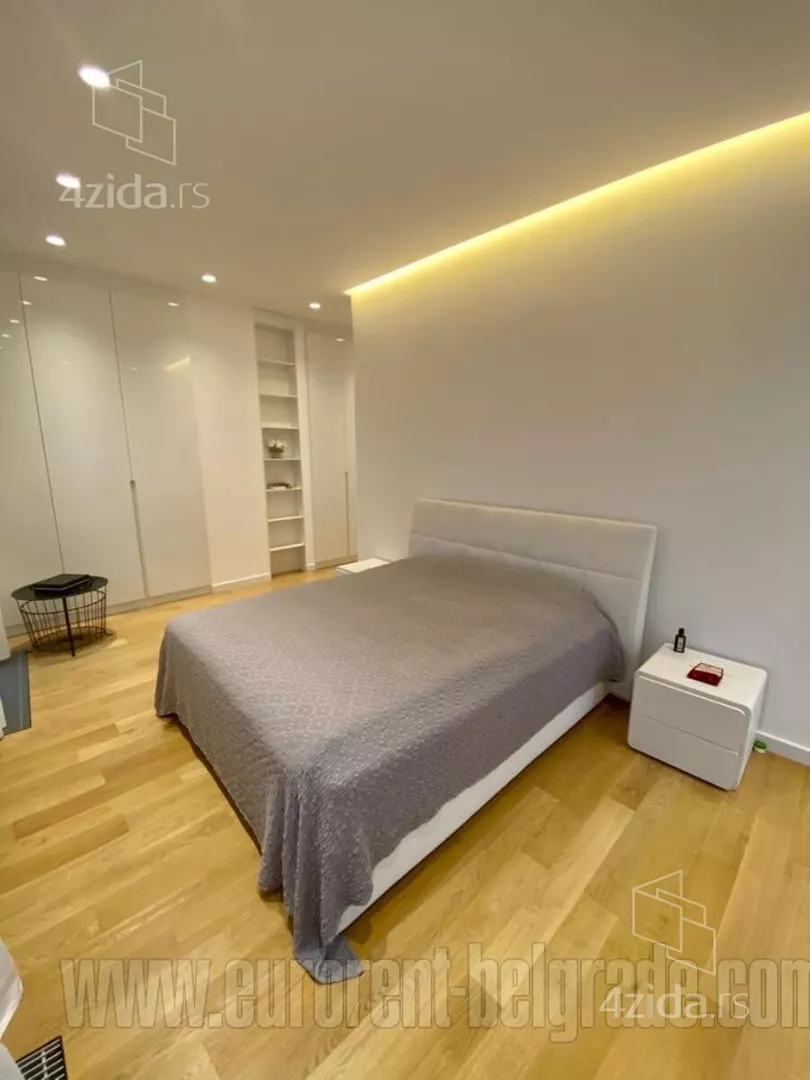 Atraktivan stan, smešten u okviru ekskluzivnog kompleksa West 65. Smešten na odličnoj lokaciji, u neposrednoj blizini Airport City poslovnog kompleksa, nedaleko od Delta City tržnog centra. Odlična povezanost sa glavnim saobraćajnicama omogućava lak pristup centru grada, aerodromu i ostalim delovima grada. Kompleks je modernog dizajna, u kombinaciji sa stilizovanim i drvenim detaljima predstavlja pravo arhitektonsko osveženje na Novom Beogradu. Objekat poseduje dečije igralište,lepo uređen prostor ispred zgrade,fizičko i tehničko obezbeđenje 24/7. Strukturu stana čini dugačak ulazni deo, koji vodi u prostrani dnevni boravak sa trpezarijom i otvorenom kuhinjom, koji izlazi na prelepu treasu koja zauzima 70m2. Spavaći blok raspolaže sa dve spavaće sobe, a stan poseduje dva kupatila i gostinjski toalet. Enterijer je luksuzan, opremljen veoma kvalitetnim komadima nameštaja i vrhunskom tehnikom. Za budućeg zakupca je obezbeđena su 2 parking mesta u garažnom prostoru zgrade.