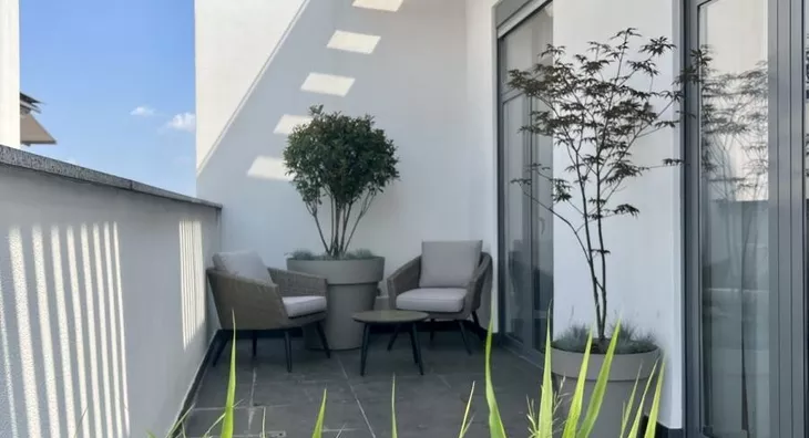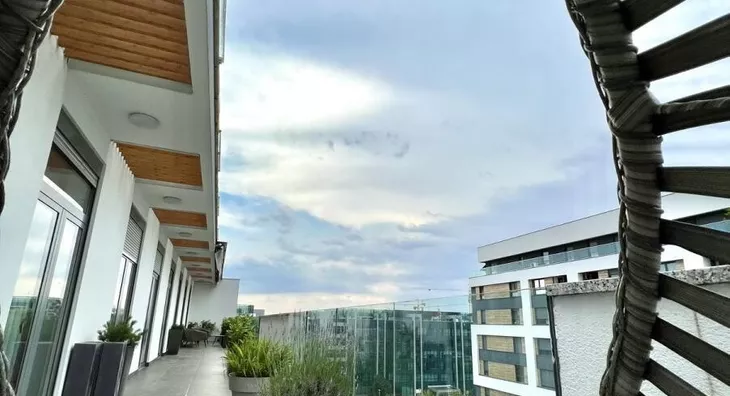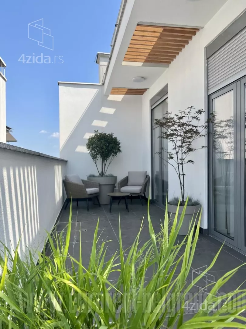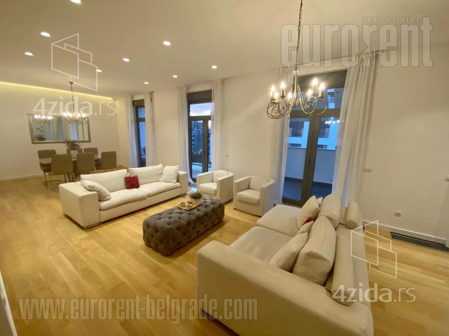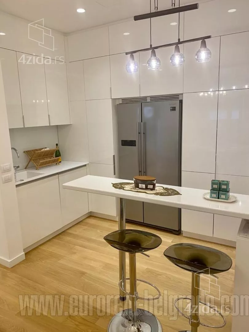 Atraktivan stan, smešten u okviru ekskluzivnog kompleksa West 65. Smešten na odličnoj lokaciji, u neposrednoj blizini Airport City poslovnog kompleksa, nedaleko od Delta City tržnog centra. Odlična povezanost sa glavnim saobraćajnicama omogućava lak pristup centru grada, aerodromu i ostalim delovima grada. Kompleks je modernog dizajna, u kombinaciji sa stilizovanim i drvenim detaljima predstavlja pravo arhitektonsko osveženje na Novom Beogradu. Objekat poseduje dečije igralište,lepo uređen prostor ispred zgrade,fizičko i tehničko obezbeđenje 24/7. Strukturu stana čini dugačak ulazni deo, koji vodi u prostrani dnevni boravak sa trpezarijom i otvorenom kuhinjom, koji izlazi na prelepu treasu koja zauzima 70m2. Spavaći blok raspolaže sa dve spavaće sobe, a stan poseduje dva kupatila i gostinjski toalet. Enterijer je luksuzan, opremljen veoma kvalitetnim komadima nameštaja i vrhunskom tehnikom. Za budućeg zakupca je obezbeđena su 2 parking mesta u garažnom prostoru zgrade.