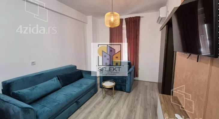 Izdaje se jednosoban, kompletno opremljen stan od 29m². Stan ima lift, terasu i norveške radijatore. U cenu su uključeni internet i kablovska. Nalazi se kod Akva parka.