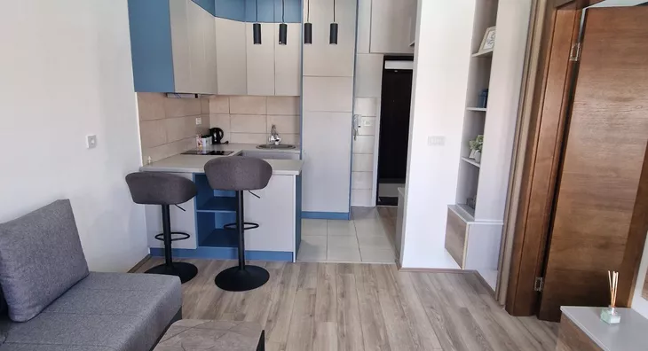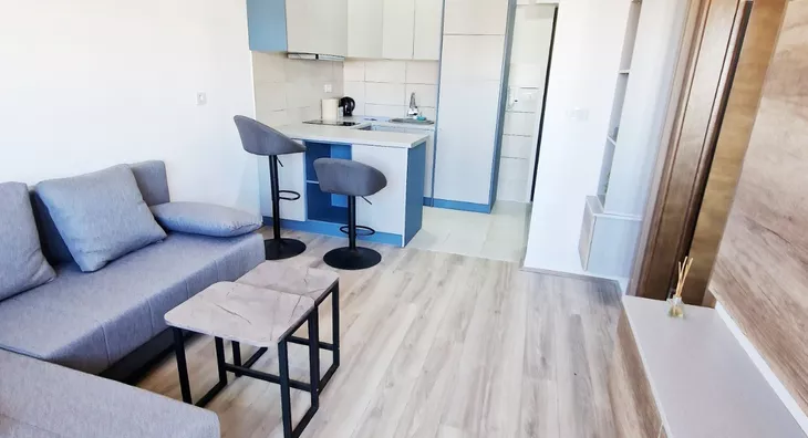 - Opremljenost: Namešteno - TV, klima, veš mašina, kuhinjski elementi, frižider, šporet, rerna, plakar