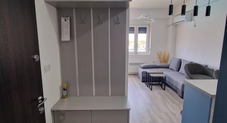 Nov jednosoban stan u novoj zgradi opremljen kompletno novim i kvalitetnim stvarima i belom tehnikom u garanciji.Grejanje na struju,norveški radijatori+klima.Slobodan od 01.09..2024god.Izdaje se samo na duži period,kućni ljubimci nisu dozvoljeni.Prednost parovi bez dece ili samci.Depozit i usluga agencije se plaćaju.