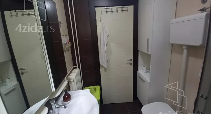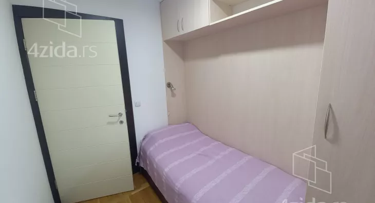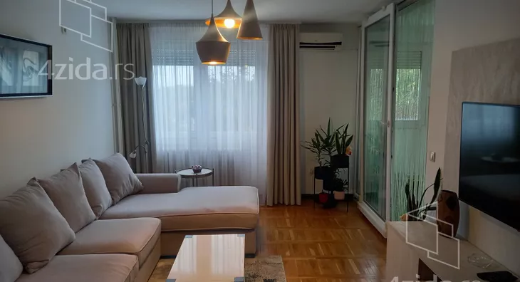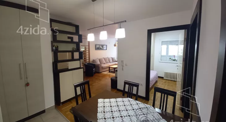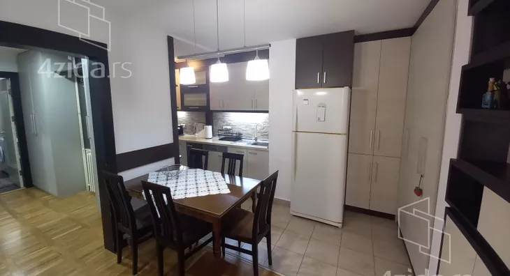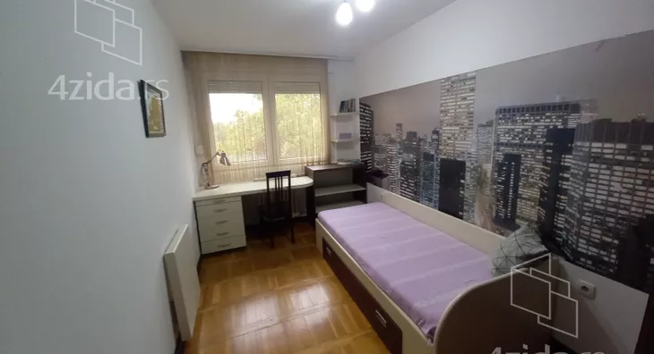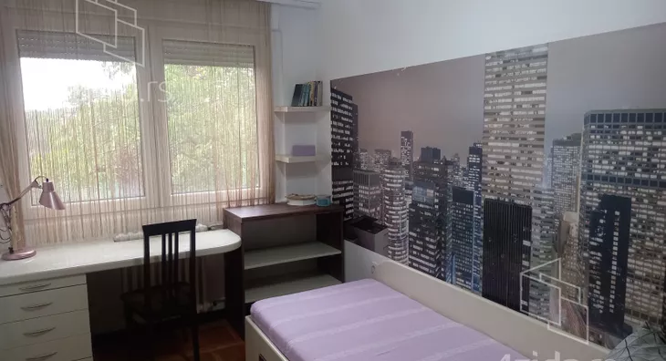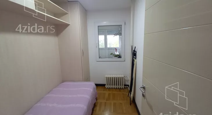 Stan se nalazi u mirnom okruženju, sa puno zelenila, u solidno održavanoj zgradi sa šest spratova. Sastoji se od dnevnog boravka iz koga se pristupa zastakljenoj terasi, delimično izdvojene kuhinje i gostinjskog toaleta. U odvojenom spavaćem bloku su tri sobe i kupatilo. Renoviran pre desetak godina, odlično održavan i veoma lepo namešten. Idealan za miran porodični život. Izdaje se isključivo na duži vremenski period.