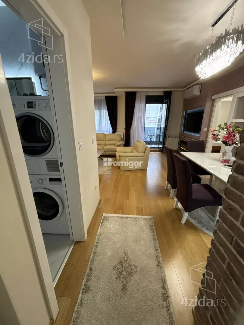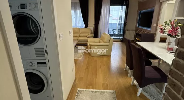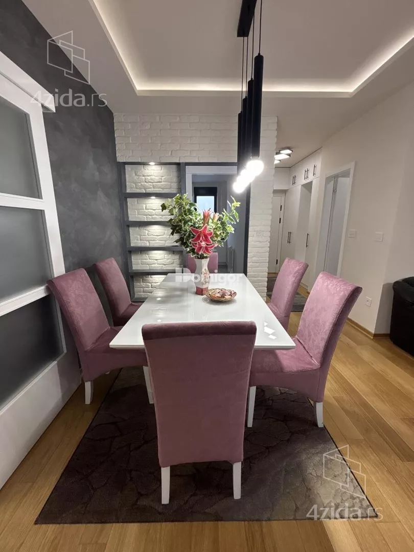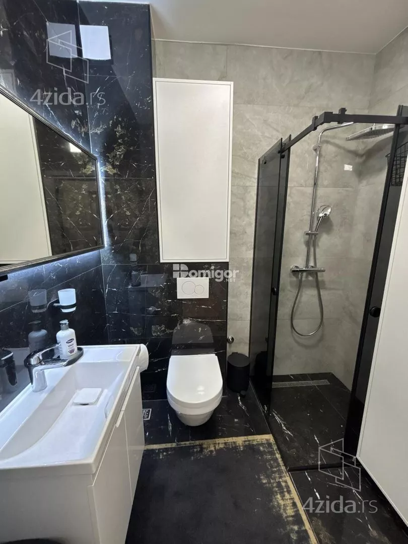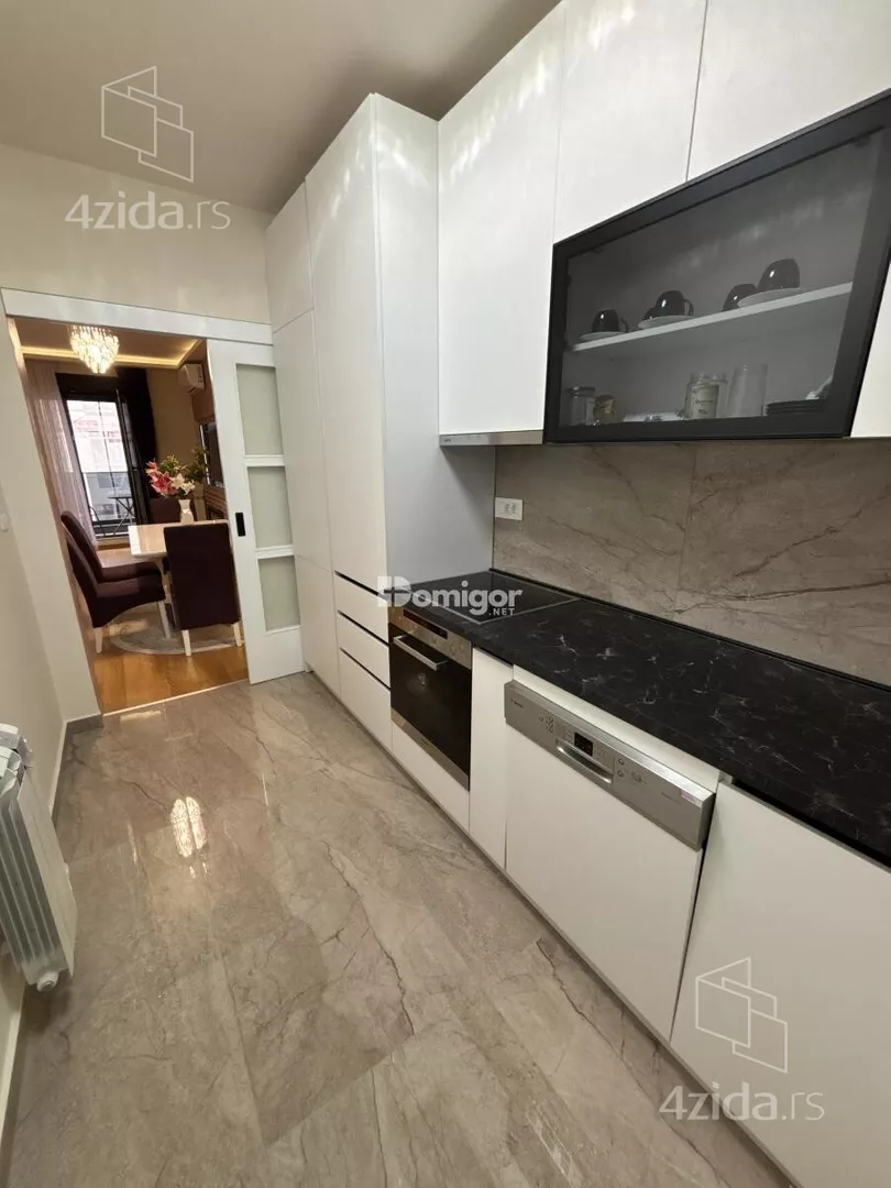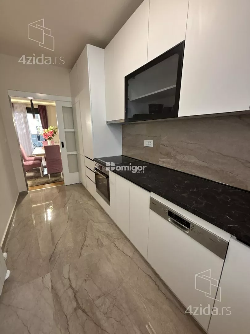 - Opremljenost: Namešteno - internet, interfon, TV, klima, veš mašina, sudo mašina, frižider, rerna, ležaj, plakar