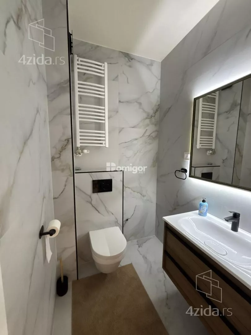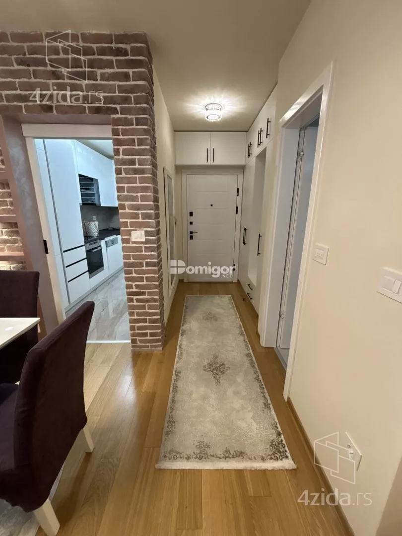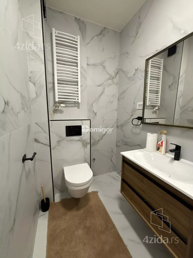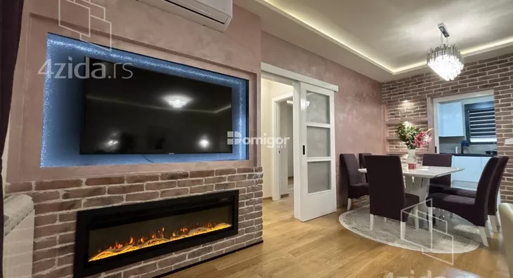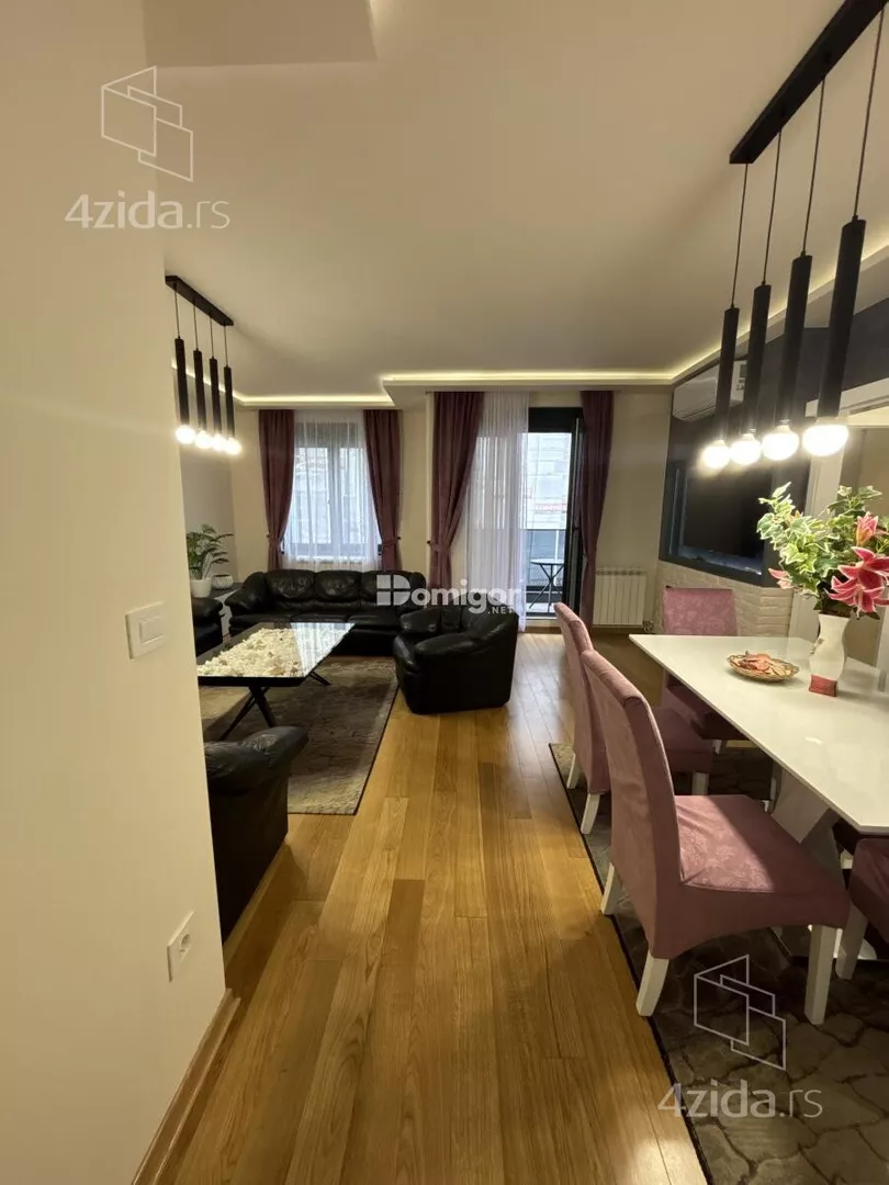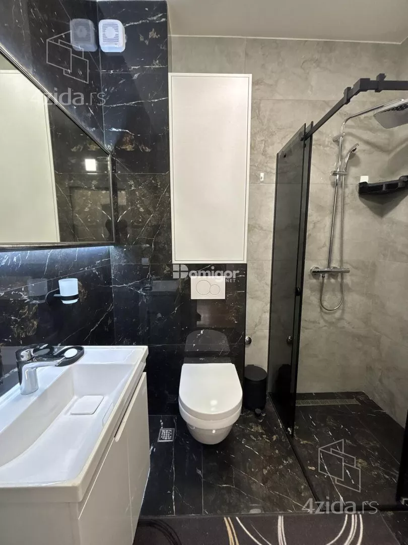 - Opremljenost: Namešteno - internet, interfon, TV, klima, veš mašina, sudo mašina, frižider, rerna, ležaj, plakar