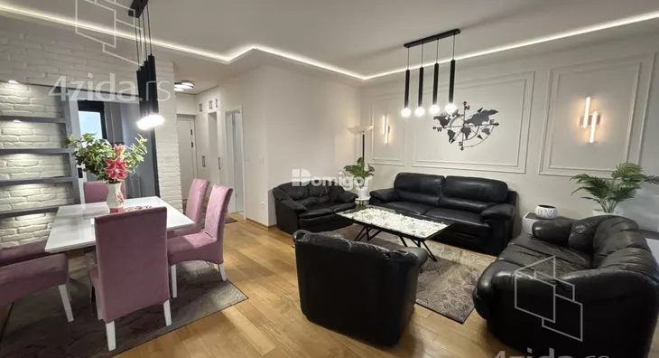 Na odličnoj lokaciji, u blizini Ada Mall-a, izdajemo potpuno nov, luksuzno opremljen stan površine 75 m², smešten u zgradi useljenoj ove godine.