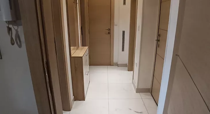 - Opremljenost: Namešteno - TV, klima, veš mašina, kuhinjski elementi, šporet, ležaj, plakar