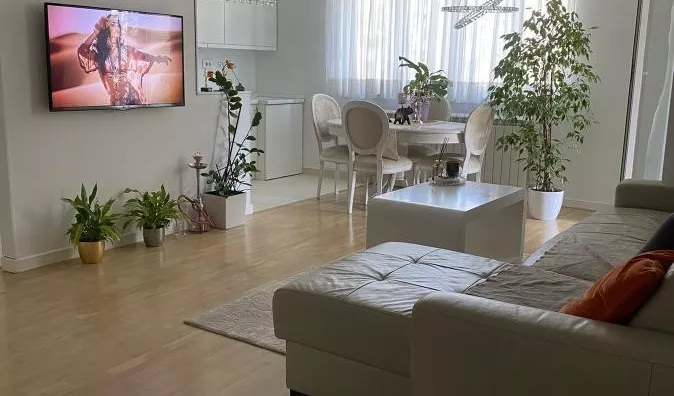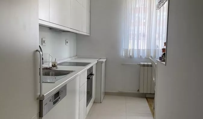 - Opremljenost: Namešteno - internet, interfon, TV, klima, veš mašina, sudo mašina, frižider, rerna, ležaj, plakar