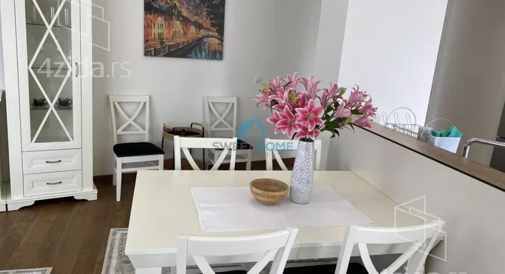 - Opremljenost: Namešteno - internet, interfon, TV, klima, veš mašina, sudo mašina, frižider, rerna, ležaj, plakar