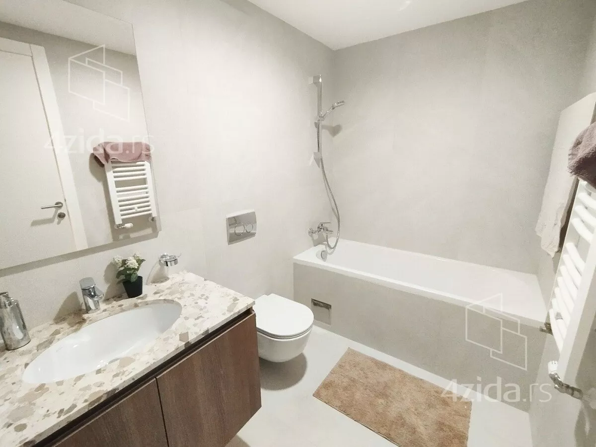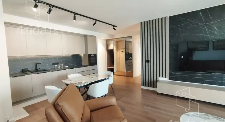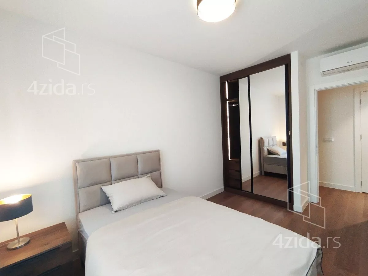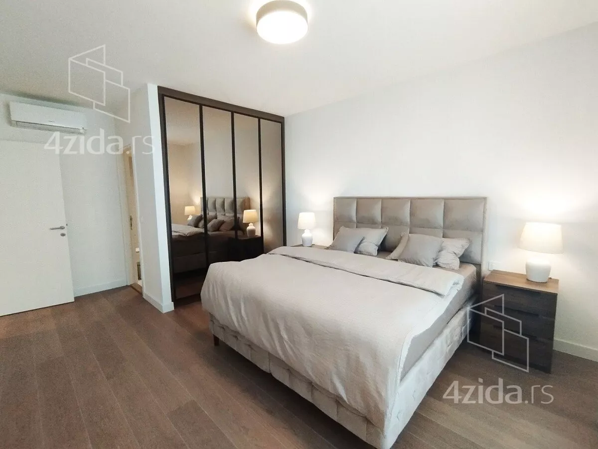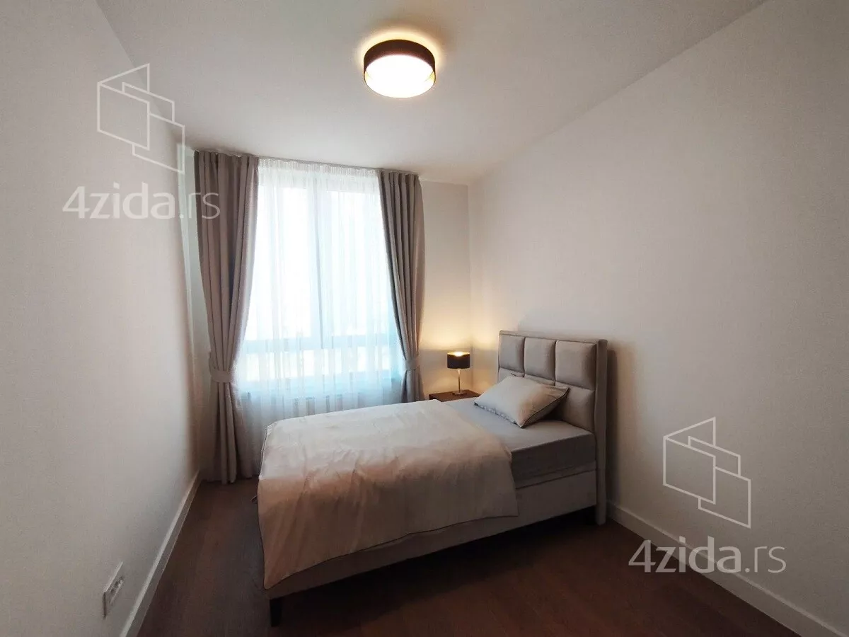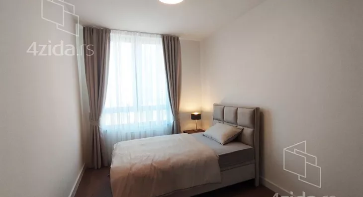 Veliki prozori obezbeđuju obilje prirodne svetlosti i pogled na Savski park. Stan se izdaje kompletno namešten kvalitetnim, savremeno dizajniranim nameštajem, spreman za useljenje bez dodatnih ulaganja. Moguć zakup jednog ili dva garažna mesta (100 € po mestu). Depozit u visini jedne mesečne zakupnine.
