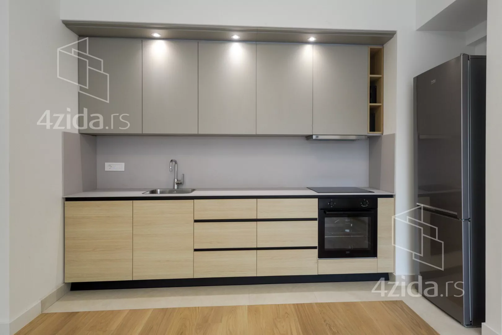 - Opremljenost: Namešteno - internet, klima, veš mašina, kuhinjski elementi, sudo mašina, frižider, šporet, rerna, ugradni plakar