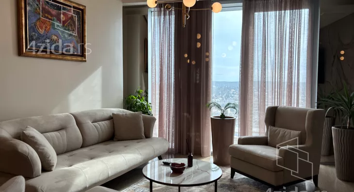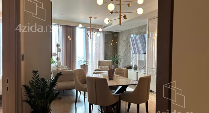 Sinonim za sofisticiranost i luksuz, a ujedno i oaza mira i komfornog životnog stila, nalazi se na 24. spratu u Kuli Beograd. Do savršenstva opremljen dvosoban stan od 62m², s pogledom na reku, koji zadovoljava najistančanije ukuse. Proklasna stolarija, bela tehnika i namještaj pažljivo odabrani za vrhunski komfor. Stan se sastoji od dnevne sobe, trpezarije i kuhinje, odvojene spavaće sobe s master kupatilom, te dodatnog gostinskog WC-a. Opremljen je brendiranim komadima nameštaja, a pažnja posvećena detaljima, poput Blumarine posteljine i humidora za tompuse, dodatno naglašava luksuz. U sklopu St. Regis hotela nalaze se spa centar, teretana i bazen, koji su na raspolaganju stanarima, a tu su i ekskluzivne concierge usluge na visokom, međunarodnom nivou. Perjanica Beograda nudi novi standard života na našim prostorima – zakoračite u novi dom već danas!