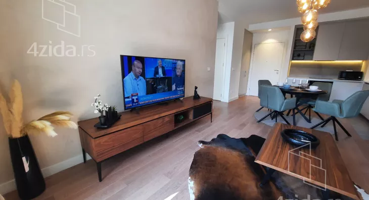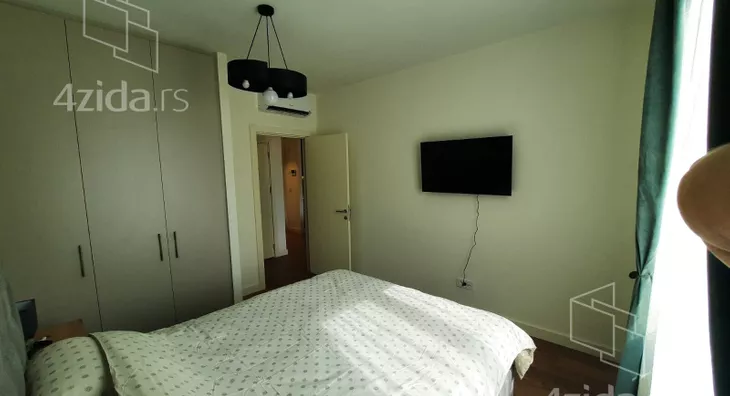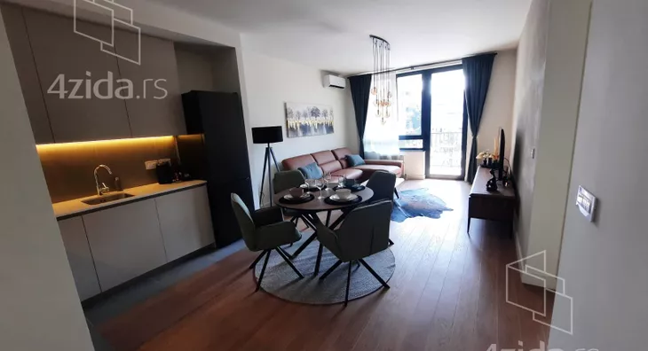 LUX dvosoban stan u Zgradi Quartet 1, jugoistočno orjentisan sa jutarnjim suncem, svetao. Kompletno opremljen sa luksuznim italijanskim nameštajem i uređajima. Zgrada poseduje recepciju sa obezbeđenjem, pored prelepog parka i Palate Pravde, blizu Sportskog centra. Useljiv odmah, uz doplatu od 100€ garažno mesto. Moguće plaćanje preko računa firme.