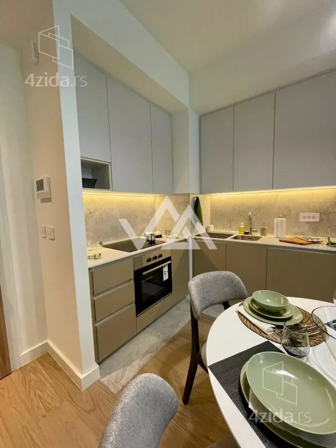 - Opremljenost: Namešteno - internet, interfon, TV, klima, veš mašina, sudo mašina, frižider, rerna, ležaj, plakar