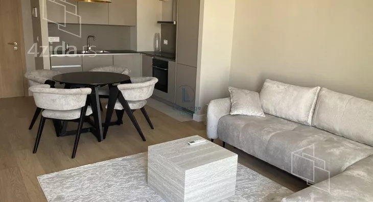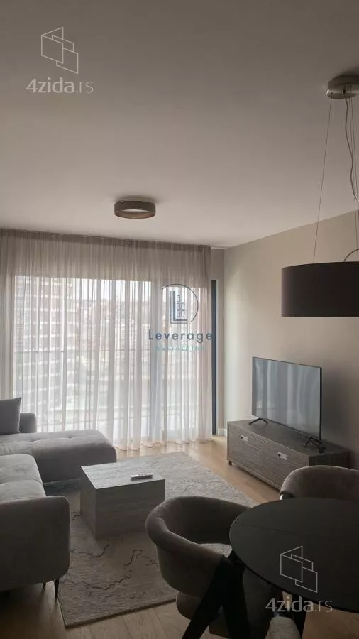 Stan odiše stilom i funkcionalnošću – ulazni hodnik vodi ka prostranom dnevnom boravku sa trpezarijskim delom i kuhinjom, tu je udobna spavaća soba, moderno opremljeno kupatilo i terasa za uživanje u pogledu. Sve je uređeno sa pažnjom na detalje, spremno za one koji žele luksuz i komfor na jednoj od najtraženijih lokacija u Beogradu.