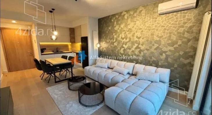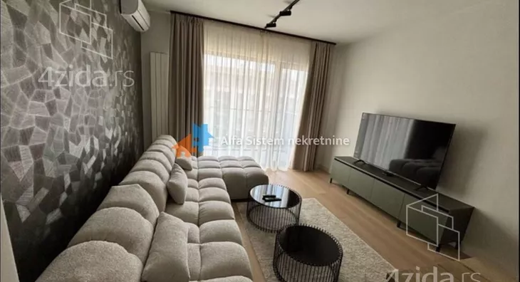 Stan se sastoji od dnevne sobe sa kuhinjom i trpezarijom, odvojene spavaće sobe, kupatila i terase. Opremljen je najmodernijom opremom, multisplit klima sistemom, visokim plafonima (2.78m) i velikim staklenim površinama koje obezbeđuju obilje prirodnog svetla i svež vazduh. Stan se izdaje kompletno namešten i odmah je useljiv.