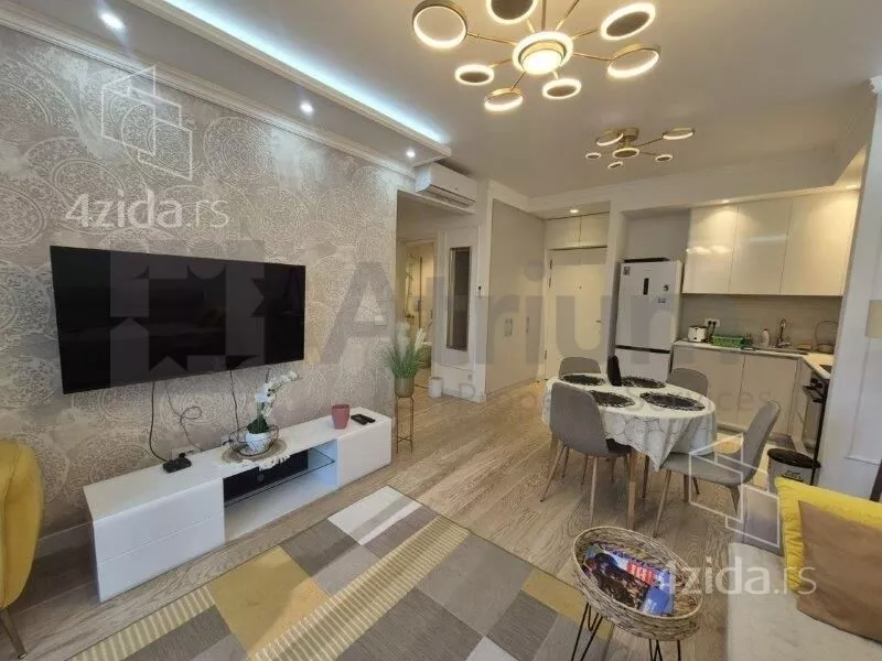 Predivno opremljen, smešten u zgradi BW Aria koja predstavlja obeležije savremenog života u kompleksu Beograd na vodi. Stan je izuzetno prostran i komforan, po strukturi dvosoban, površine 52,74m2, sastoji se iz ulaznog dela sa velikim open-space dnevnim boravkom koji je povezan sa trpezarijom kao i potpuno opremljenom kuhinjom, spavaće sobe, kupatilom kao i vešernicom. Stan ima i predivnu terasu opremljenu nameštajem.