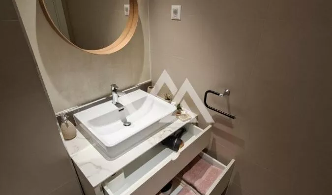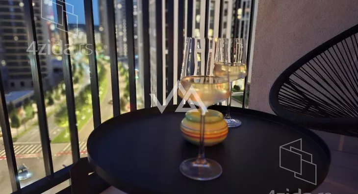 U ponudi je moderan, dvosoban, kompletno namešten apartman u luksuznoj zgradi Metropolitan, u okviru kompleksa Beograd na vodi. Stan se nalazi na 8. spratu, istočno orijentisan, sa prelepim pogledom na grad. Lokacija je izuzetna — na početku bulevara Vudroa Vilsona, u neposrednoj blizini Promenade, Savskog parka, tržnog centra Galerija, restorana i Kalemegdana.