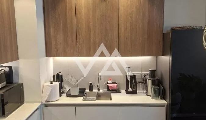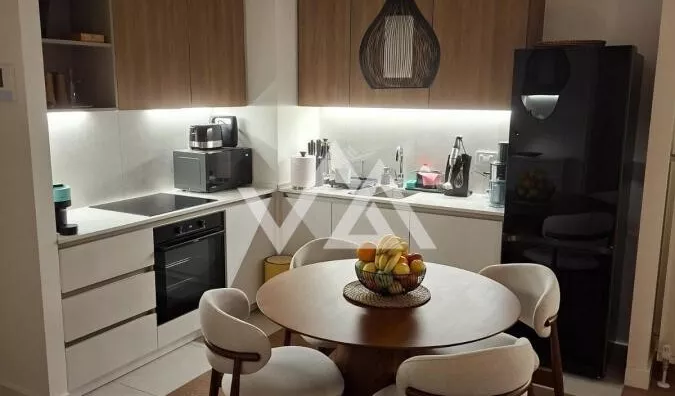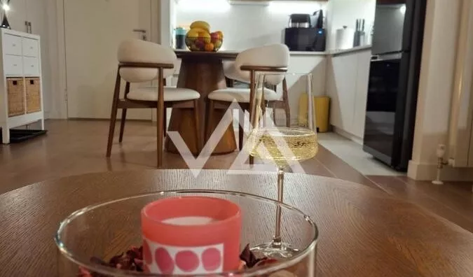 Stan se sastoji od dnevne sobe sa trpezarijom, kuhinje, spavaće sobe, terase, kupatila i vešernice. Opremljen je vrhunskim uređajima: mašina za pranje i sušenje veša, mašina za sudove, brzi Wi-Fi, kablovska TV, multisplit klima uređaji u svakoj prostoriji, centralno grejanje. U cenu je uključeno i garažno mesto na nivou -1.