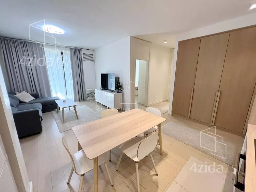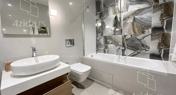 U zgradi Magnolija u elitnom naselju Beograd na vodi izdaje se stan sa lepom terasom i pristupom zelenilu. Dizajniran moderno, namešten kompletno. Izuzetno je pogodan za prijatan život pored reke. Recepcija, obezbeđenje, video nadzor. Sastoji se od predsoblja, dnevne sobe sa trpezarijom i kuhinjom, lepe terase na koju izlaze i dnevna i spavaća soba, spavaća sobe, vešernice i kupatila. Postoji mogućnost zakupa garažnog mesta u garaži po ceni od 100 eura. Vrhunski materijali, najnoviji sistemi grejanja, blind vrata, alu stolarija. Odmah useljiv Posrednička nadoknada koju plaća zakupac, iznosi 50% od prve mesečne