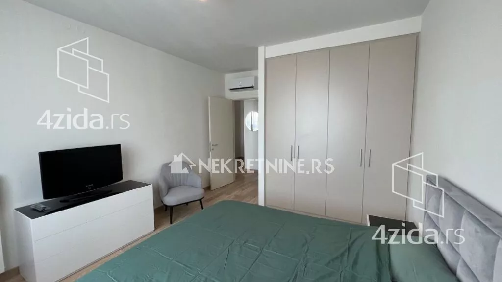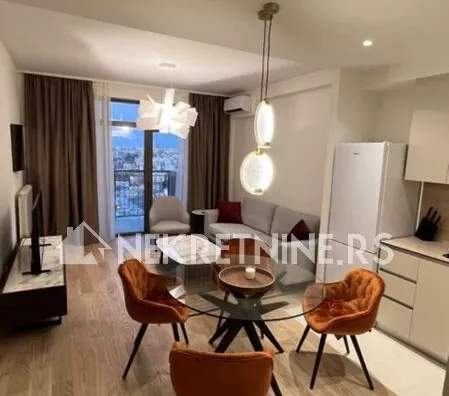 Izuzetan, veoma luksuzno sređen stan, nov, neuseljavan, u zgradi Aurora. Kompletno je namešten veoma kvalitetnim nameštajem i tehnikom, Komforan i funkcionalan. Sastoji se od dnevnog boravka i kuhinje, odvojenE spavaće sobe, kupatila, ostave u kojoj je mašina i terase. Uz stan ide i garazno mesto.
