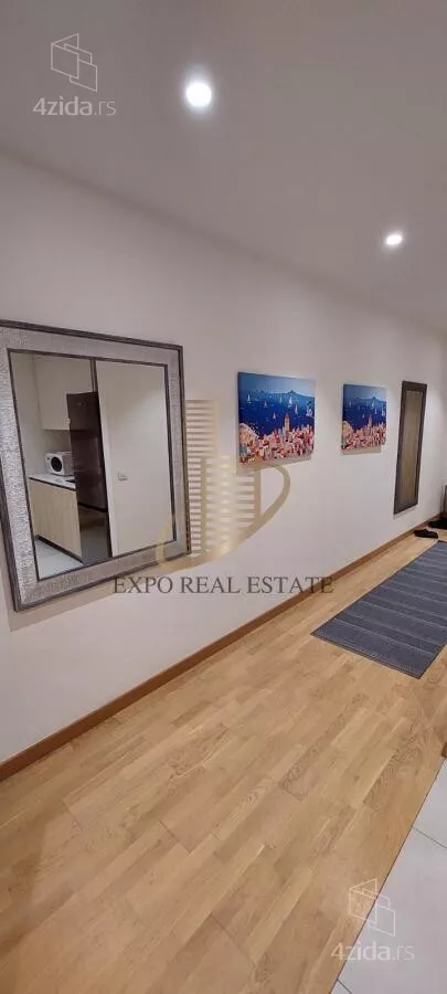 - Opremljenost: Namešteno - internet, interfon, TV, klima, veš mašina, sudo mašina, frižider, rerna, ležaj, plakar