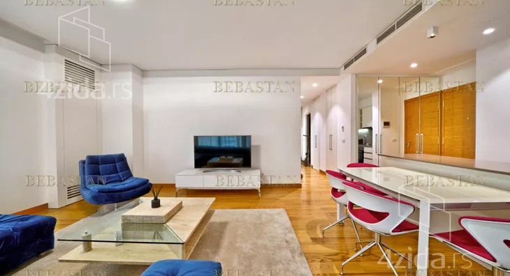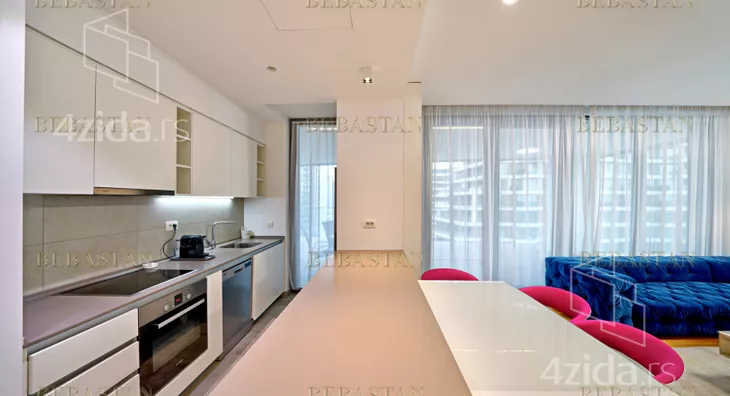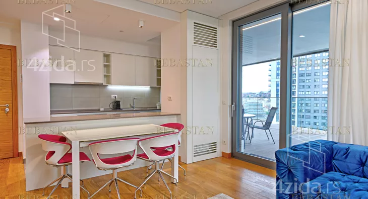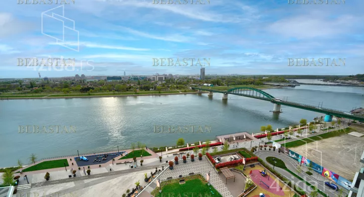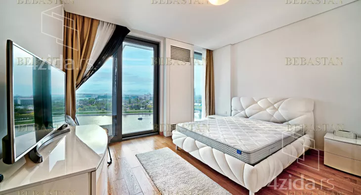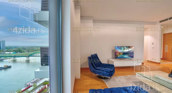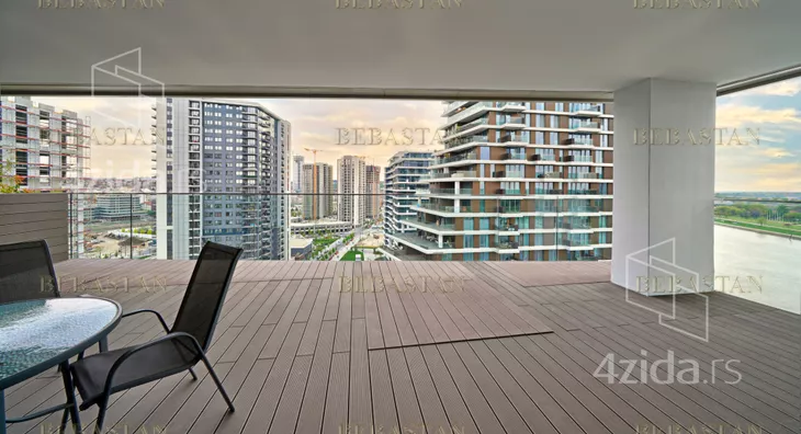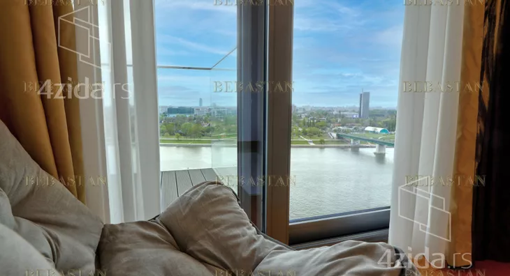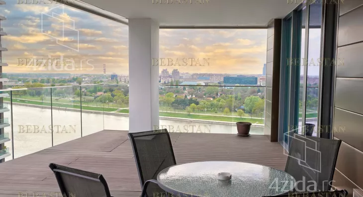 Terasa u ovom stanu ima kvadraturu nečijeg celog stana. Sa njenih 45 kvadrata i sa velikih prozora 14. sprata pruža se panoramski pogled na obale Save i savske mostove. Funkcionalan, svetao i moderan, stan je smešten u najprestižnijoj zgradi Beograda na vodi, u čijem sklopu se nalaze bazen i teretana za stanare. Sa čak tri obezbeđena garažna mesta, i gosti će imati gde da parkiraju.
