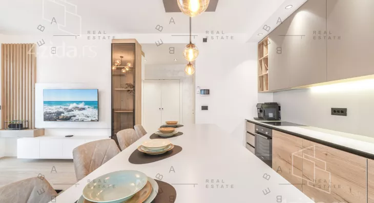 Kompletno nov, dizajnerski projektovan stan u okviru kompleksa Beograd na vodi, zgrada Simfonija,