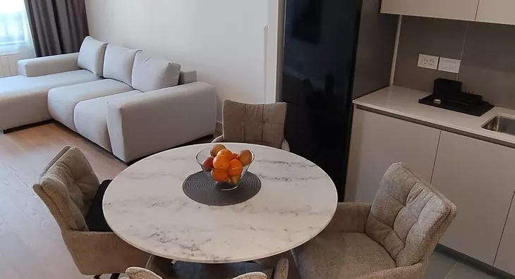 - Opremljenost: Namešteno - internet, TV, klima, veš mašina, kuhinjski elementi, sudo mašina, frižider, zamrzivač, šporet, rerna, ležaj, plakar, ugradni plakar