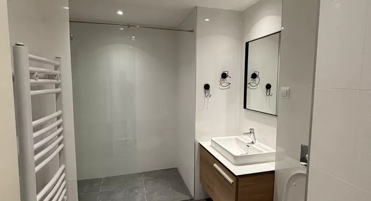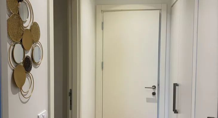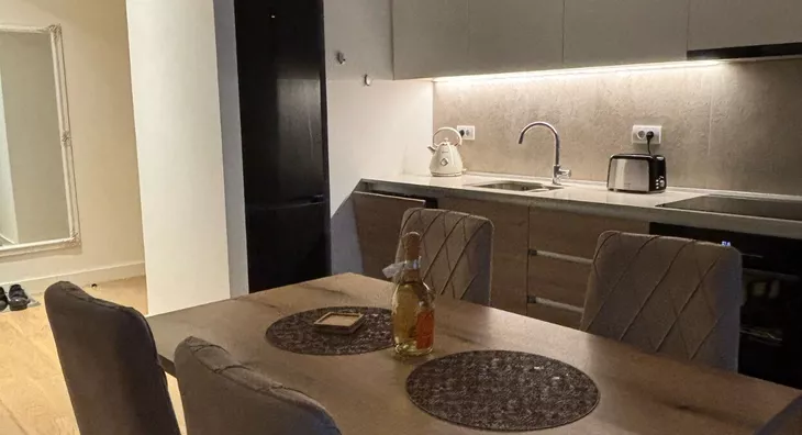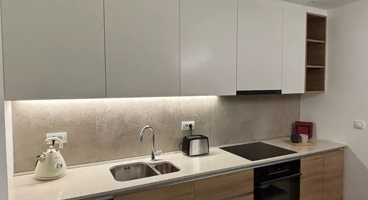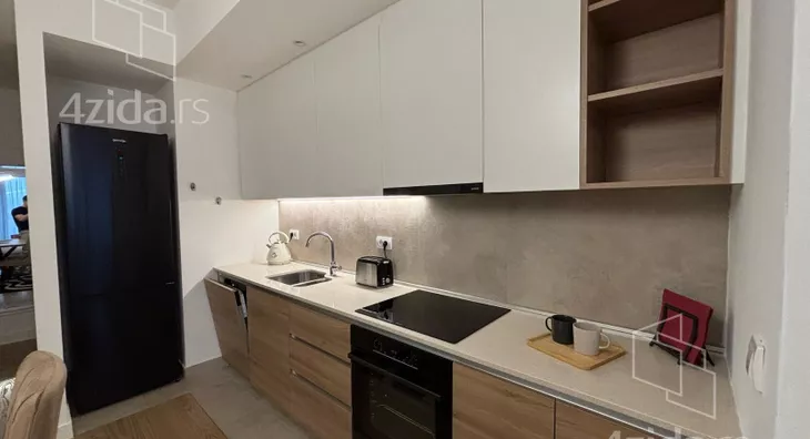 - Opremljenost: Namešteno - internet, TV, klima, ventilacija, veš mašina, kuhinjski elementi, sudo mašina, frižider, zamrzivač, šporet, rerna, ležaj, plakar, ugradni plakar