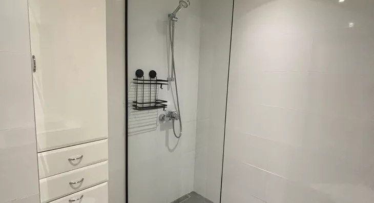 Prostrane sobe uključuju master sobu sa vlastitim kupatilom opremljenim tuš kabinom, dok druga soba može služiti kao radna ili dečija soba. Tu je i dodatno kupatilo sa kadom, savršeno za opuštanje. U stanu se nalazi i ostava u kojoj su smešteni centralni bojler, kao i mašina za pranje i sušenje veša, što dodatno doprinosi funkcionalnosti prostora.