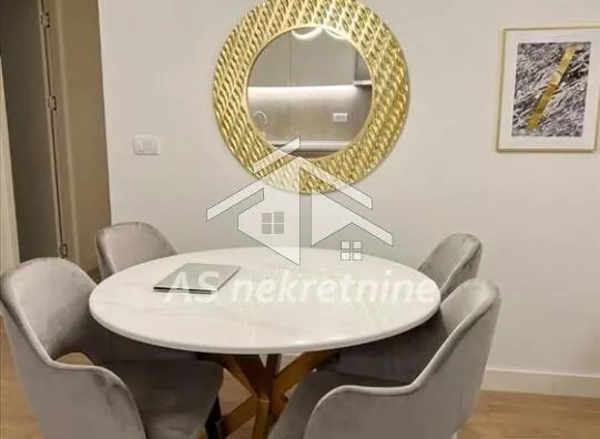 Stan se izdaje potpuno opremljen visokokvalitetnim nameštajem, belom tehnikom i svim potrepštinama za život (posteljina, posuđe, mali aparati). Klimatizacija putem multisplit sistema, plafoni visine 2.8 m i prozori od poda do plafona dodatno ističu eleganciju i prostranost prostora.