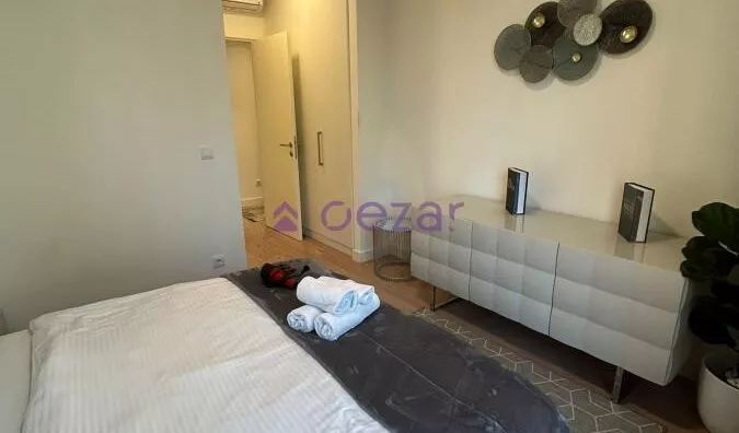 Izdaje se prostran i luksuzno opremljen trosoban stan u Beogradu na vodi, smešten na 13. spratu prestižne zgrade, sa prelepim panoramskim pogledom. Stan se sastoji od prostrane, svetle dnevne sobe koja je moderno nameštena i povezana sa open space kuhinjom opremljenom najsavremenijim uređajima. Glavna spavaća soba ima svoje privatno kupatilo, dok druga spavaća soba poseduje udoban francuski ležaj i koristi drugo, potpuno opremljeno kupatilo.