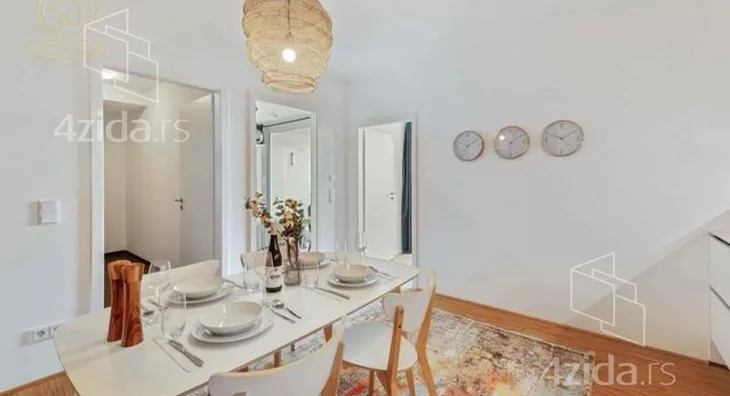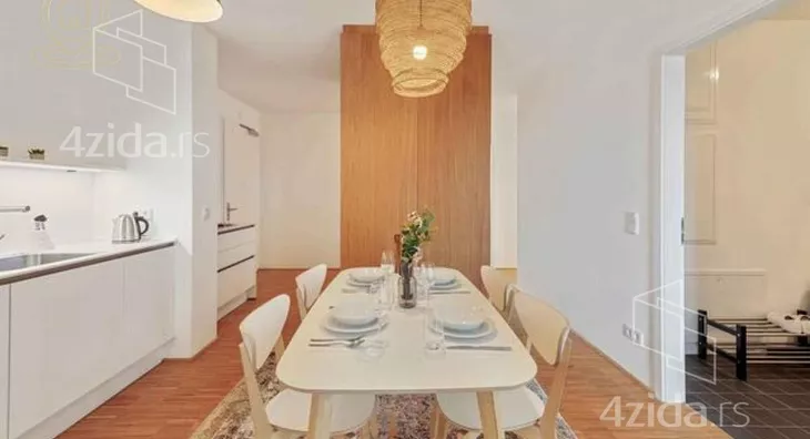 - Opremljenost: Namešteno - internet, interfon, TV, klima, veš mašina, sudo mašina, frižider, rerna, ležaj, plakar