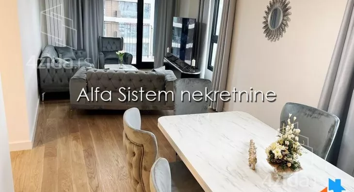 Izdaje se prostran trosoban stan od 98 m2, na 7. spratu prestižne zgrade Terra u okviru kompleksa Beograd na vodi. Stan je potpuno opremljen luksuznim nameštajem i spreman za useljenje odmah.