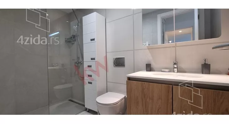 Stan se sastoji od dnevnog boravka sa kuhinjom, 2 komforne spavaće sobe od kojih je 1 master, 2 kupatila, ostave i terase otvorenog pogleda. Izdaje se kompletno opremljen za stanovanje, nameštajem sa fotografija, ugradnom kuhinjom i garderoberima, kao i svim neophodnim električnim uređajima. Svaka soba ima klimu.