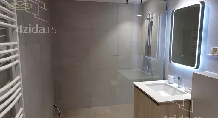 - Opremljenost: Namešteno - interfon, TV, klima, veš mašina, sudo mašina, frižider, rerna, ležaj, plakar