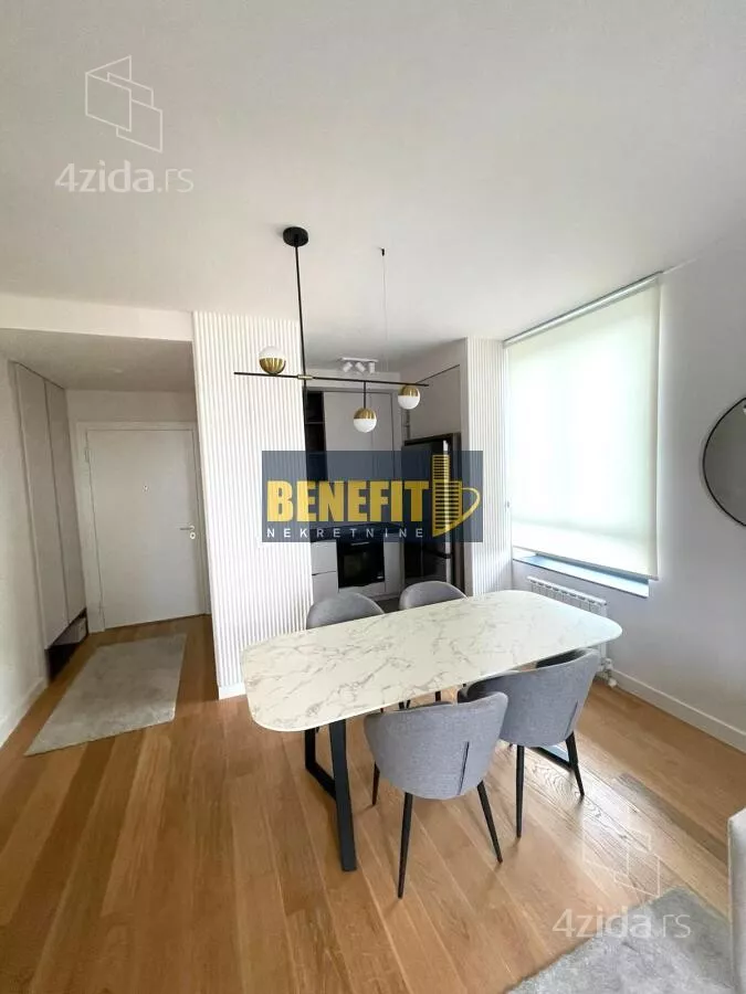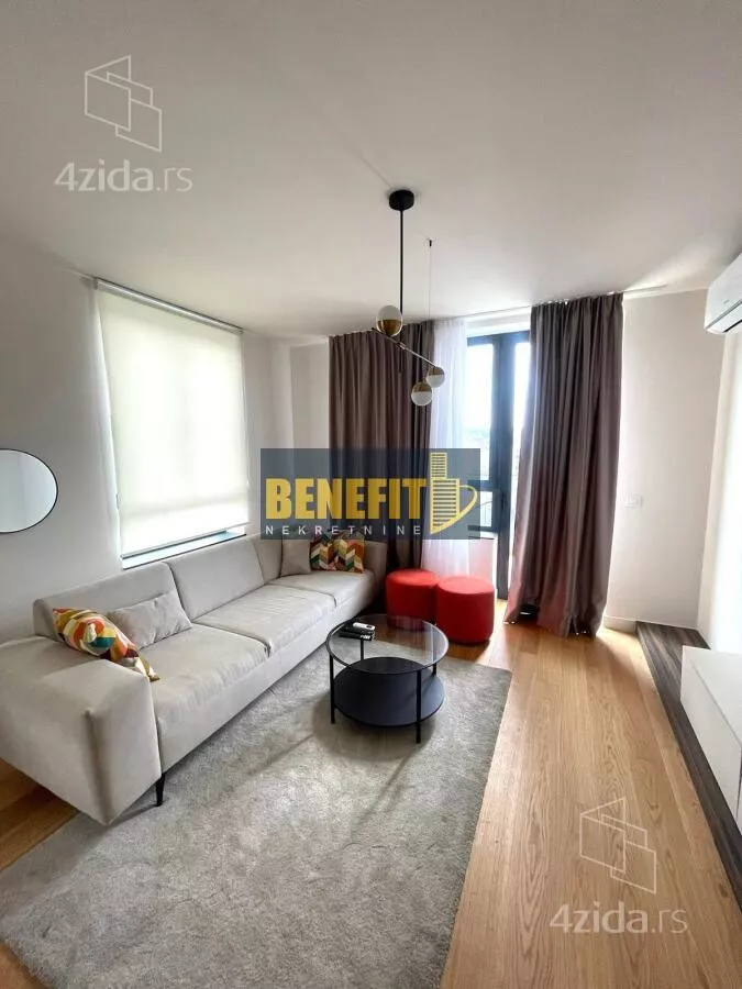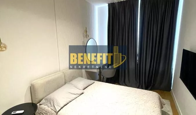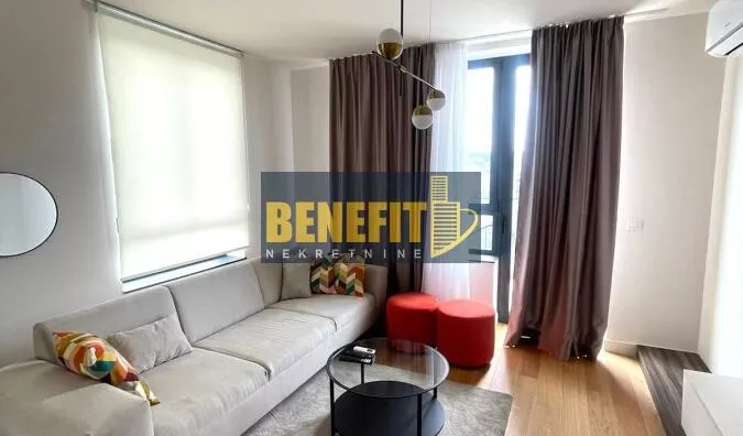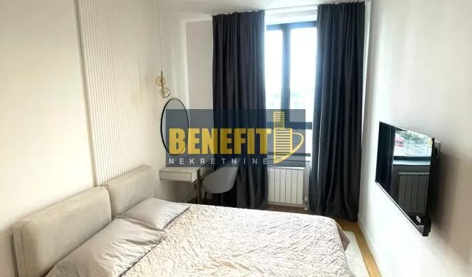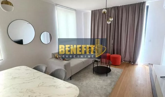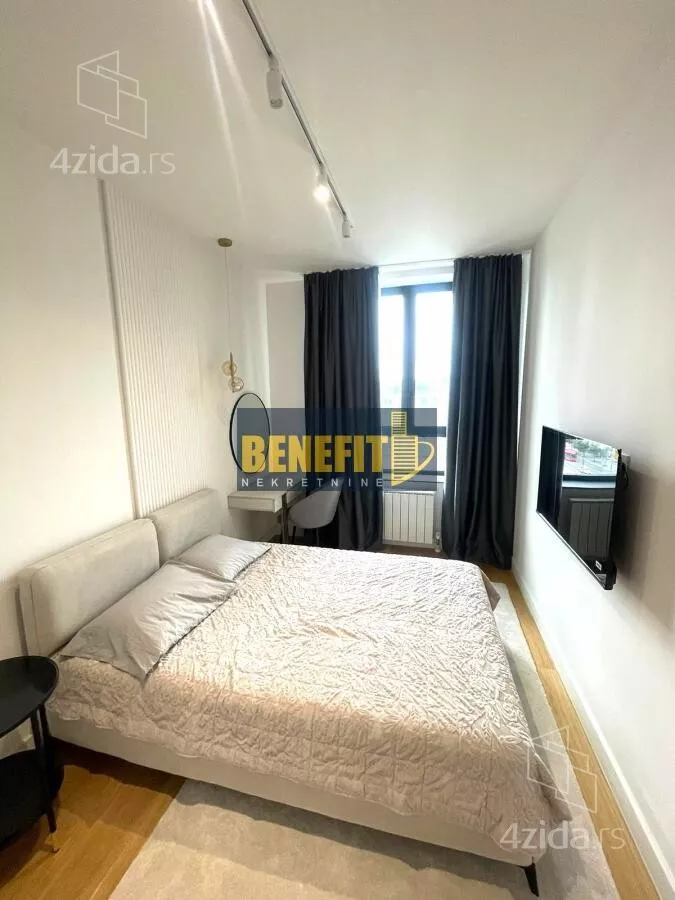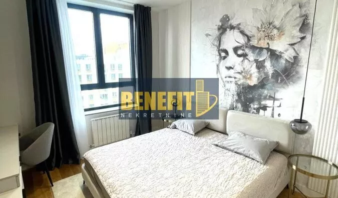 Odmah useljiv i luksuzno opremljen, izdaje se potpuno namešten stan sa pogledom na grad, na sedmom spratu zgrade Quartet 4, u centru Beograda na vodi.